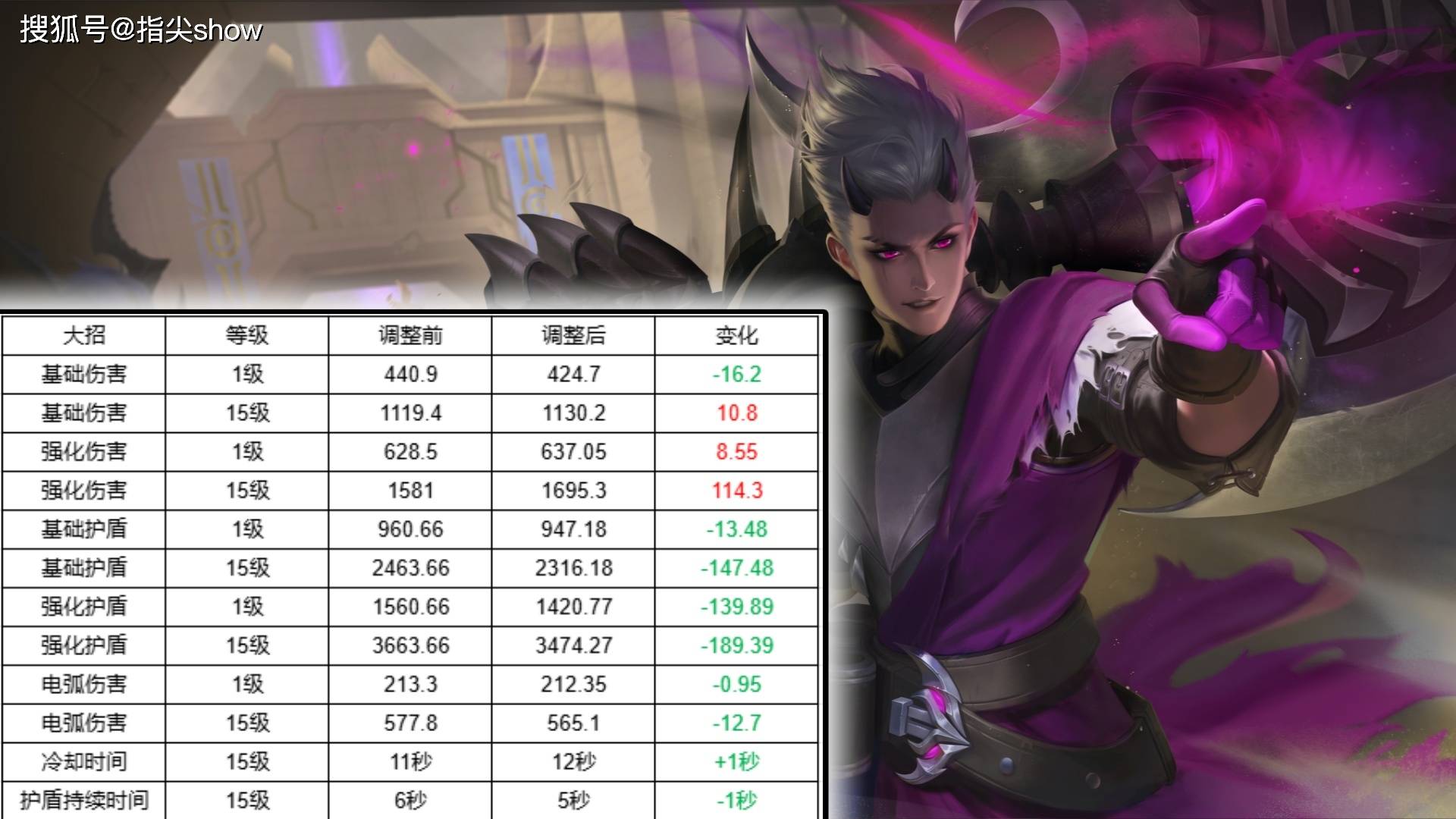 大招的调整内容比较多,还涵盖了冷却时间和持续时间。