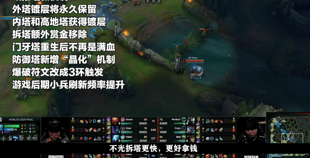 在新机制下,内塔和高地塔也会获得镀层,而且拆塔获得的额外金钱将被移除,同时门牙塔在重新后不再满血,仅保留部分血量,但设计师并没透露具体数值。另外,防御塔新增“晶化”机制,当没受到伤害时会累积晶化层数,一旦受到攻击将转化为额外伤害。值得一提的是,S16赛季开始,后期小兵刷新会越来越快,更利于单带运营的策略,说不定剑圣偷塔会重现。