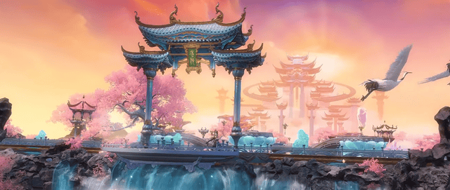 各位少侠,现在我们正在前往天宫的列车上。现在的天宫简直是从《太平广记》里搬出来似的,金阙银宫浮于云巅,仙光乍涌,云海翻腾,拍照都不用加滤镜,随手一拍就是“仙门大片”。走两步还能撞见仙鹤盘旋,我猜云里飘着的也全是甜香桃味~ 这波做神真的太有福气了!
