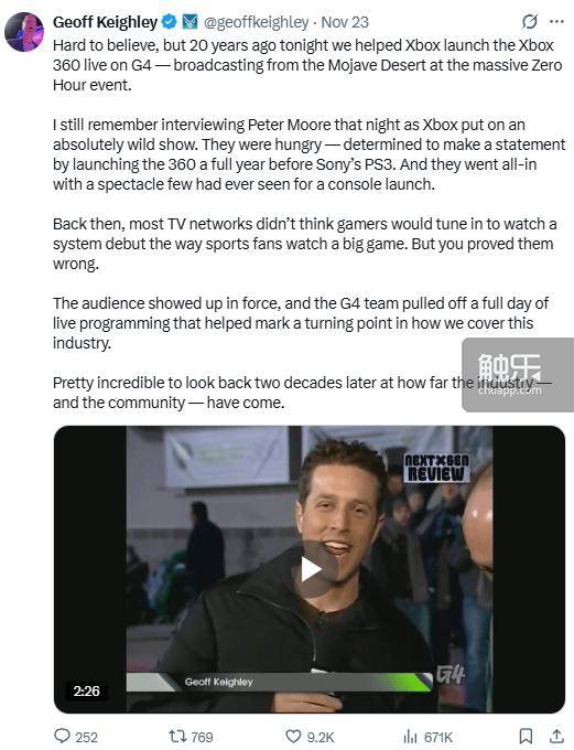 Geoff Keighley从业近30年,1996年就创办了自己的游戏评测和新闻网站,在G4电视台任职时期也参与过重要新闻事件的报导