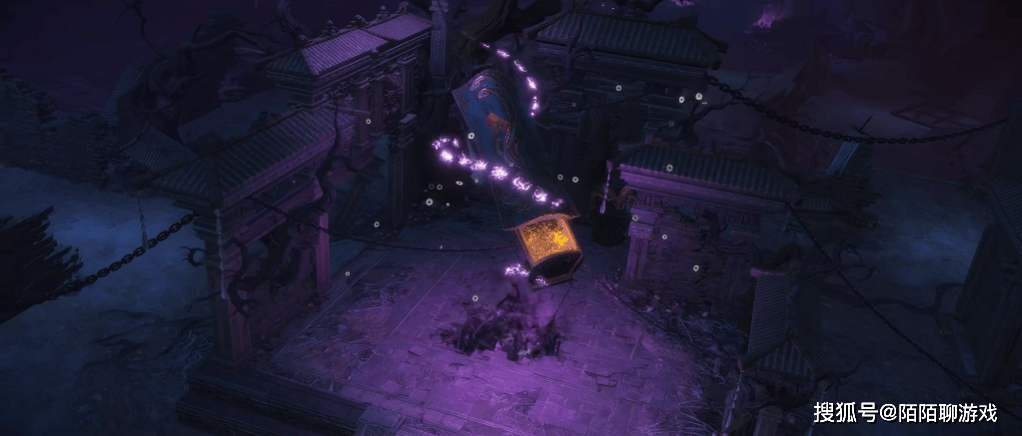 地府的场景塑造同样特色十足!阴森、破败的诡谲感油然而生,既保留了中式建筑的骨架,又用暗色调、邪异光效渲染出惊悚诡异的氛围,与天宫的清朗形成了鲜明的对比。