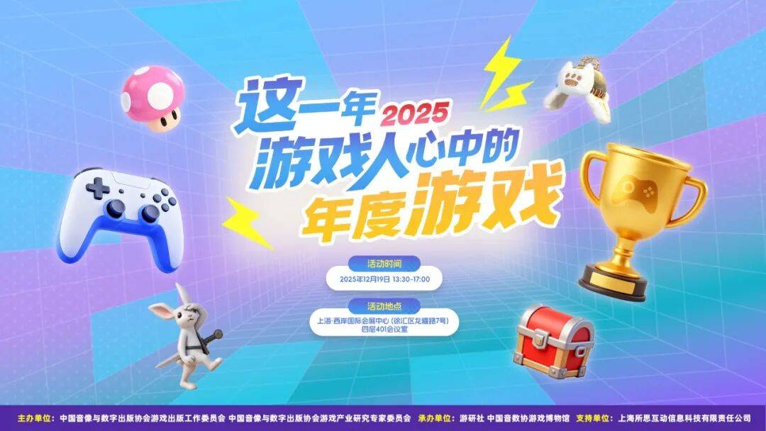 由中国音像与数字出版协会游戏出版工作委员会与中国音像与数字出版协会游戏产业研究专家委员会主办,上海所思互动信息科技有限责任公司支持,游研社与中国音数协游戏博物馆承办的“游戏人的年度游戏”交流活动将于 12 月 19 日下午 13:30 在上海市徐汇区西岸会议中心 401 举行。