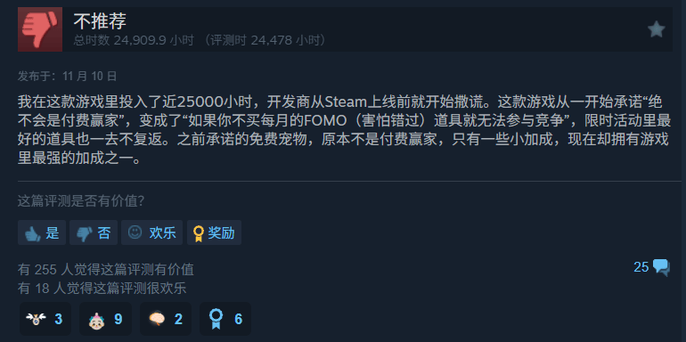 只不过纯放置游戏非常挑人,玩起来也很肝,肝过了甚至让人不爽。比如《IdleOn》下最火的,就是一名玩了近25000小时的大佬怒喷开发商的评论。