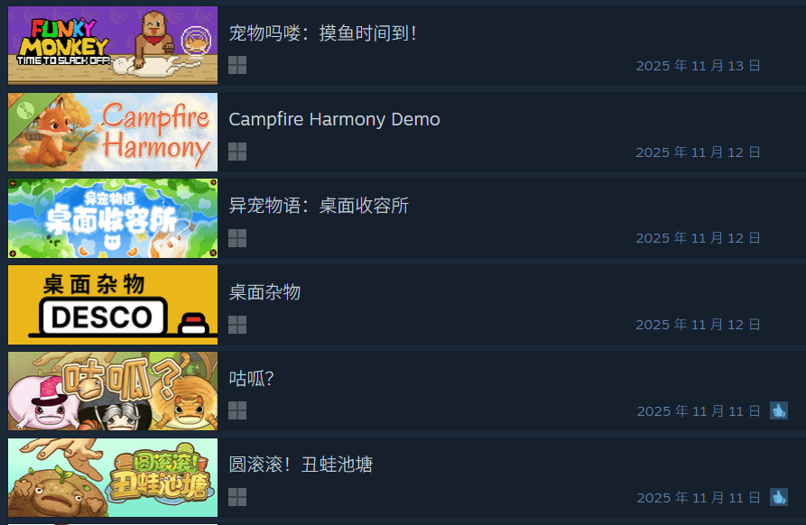 近一点的有《桌面鸟舍》《萌宠不摸鱼》《战斗吧!勇者学院》,年中有《遗忘週一咖啡馆》《麦穗镇物语》《湖畔酒馆》《我的动物公司》《桌宠屋》《巴尔的遗产》《悠哉钓鱼》《线条小狗》等。