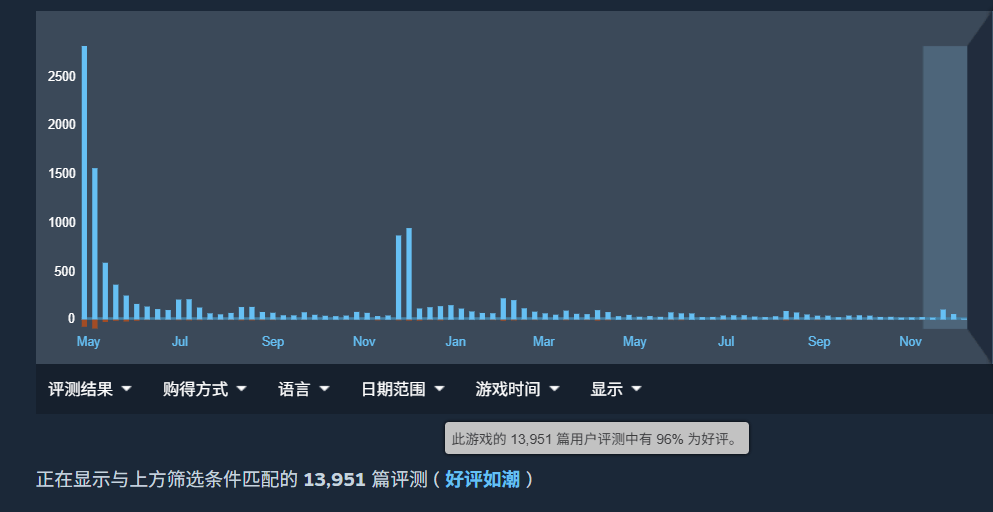它的口碑也非常好,Steam上近1.4万条评论给出96%的好评率,评论区清一色的好评,夸赞游戏是最好的「上班搭子」「摸鱼小能手」,哪怕游戏有一定的瑕疵,也不妨碍玩家的夸夸。