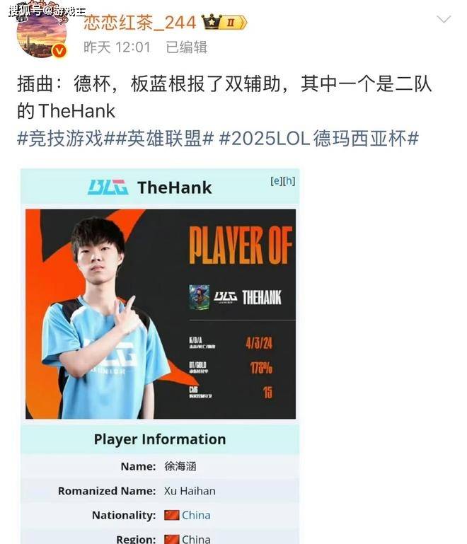 大家好,S15赛季的比赛已经全部结束了,相信绝大多数玩家都关注了最近一段时间的休赛期,lpl赛区的整体人员变动是非常大的。同时,一些队伍也组建了顶级的银河舰队,德玛西亚杯的比赛成为了很多网友讨论的焦点。这是各大战队进行重组之后的首次亮相,很多的队伍都会派出一些主力阵容。就在最近,德杯比赛的细节也被公布,这一次有很多的队伍参加,同时也有两支主播队,最让粉丝们感到意外的应该是blg战队的人员配比,竟然派上了双辅助,二队Thehank提上名单,难道说这一次又要来一个辅助上的轮换上场了吗?