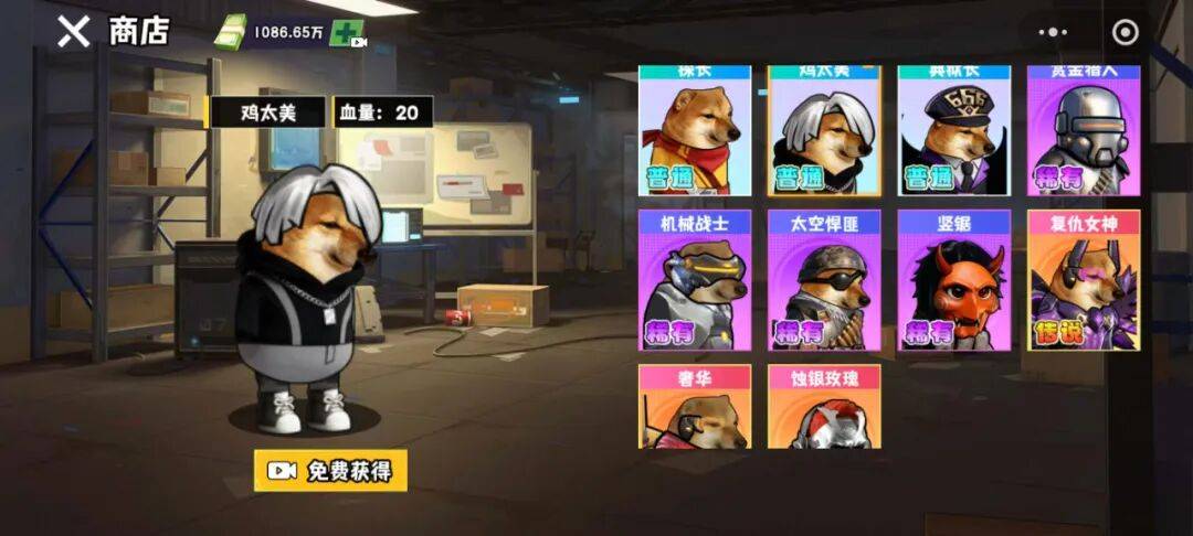 游戏中的主角是网友们熟知的狗子形象,可以解锁的干员角色叫做“修狗”、“哈基蜂”,商店里面还售卖着“鸡太美”的经典皮肤。就连进入游戏后,玩家也是全程被梗“追着跑”,搜刮到不值钱的物资,系统会弹出 “崩溃了、我真的崩溃了” 的嘲讽式提示,好不容易找到高价值道具,耳边还会炸开 “金色传说” 的魔性音效,再搭配随处可见的猫猫头表情包,给人一种被网络热梗包围了的感觉。