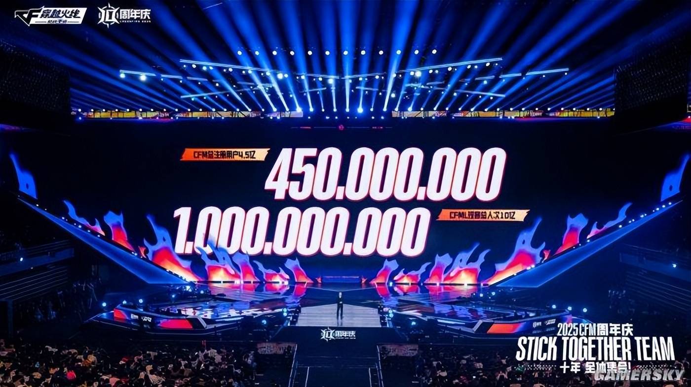 今年8月,游戏的日活跃用户(DAU)突破1200万。而在十周年庆典上,官方还公布了一组更直观、更震撼的数据:游戏的总注册用户突破4.5亿,CF手游电竞赛事的累计观看人数也突破10亿人次。