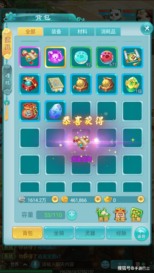 与使用普通藏宝图一样,在背包中点击逍遥宝图,角色便会自动前往藏宝地点进行挖掘。例如这一铲下去,或许就能获得珍贵的资质丹……倘若能幸运地挖出高级兽诀,那么赚回数倍于成本的收益也绝非难事。