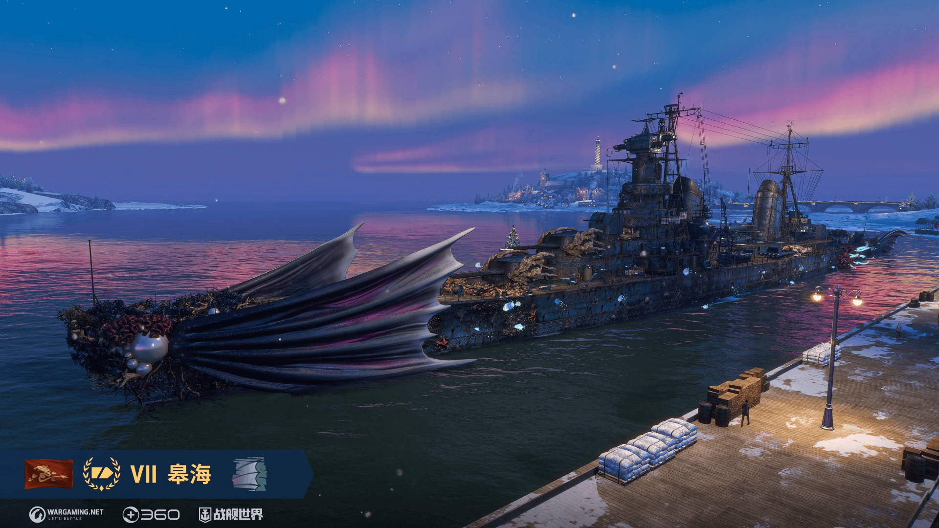 这两款涂装里,纽伦堡44被装饰为了一艘海上邮轮,上面是张灯结彩,气氛是相当喜庆。而皋海则是另一个画风,有着大量海洋生物元素,甚至还有专属特效,给人一种《加勒比海盗》中飞翔荷兰人号的感觉。