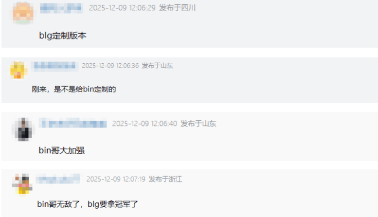 对此,不少网友表示:“BLG定制版本”、“bin的贾克斯拿出来就赢”、“bin哥大加强”、“BLG王朝了”。不得不说,在新机制加入后,许多英雄的可玩性将得到大幅提高,届时各个战队在BP上必然会有所变化。