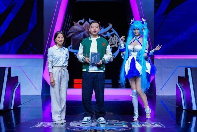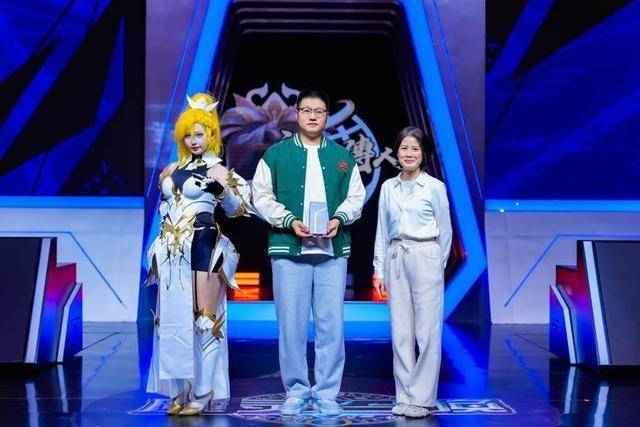 广东省电子竞技运动协会副会长兼秘书长罗觉慧女士(右一)为亚军“爱钓鱼的海子”选手颁奖
