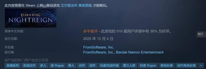 FromSoftware公布了这样的数据:DLC发售2天内,全球销量突破200万份。但是打开Steam商店,我看到大家对于新DLC的评价不是很高,甚至可以说相当低,目前只有36%的好评率。
