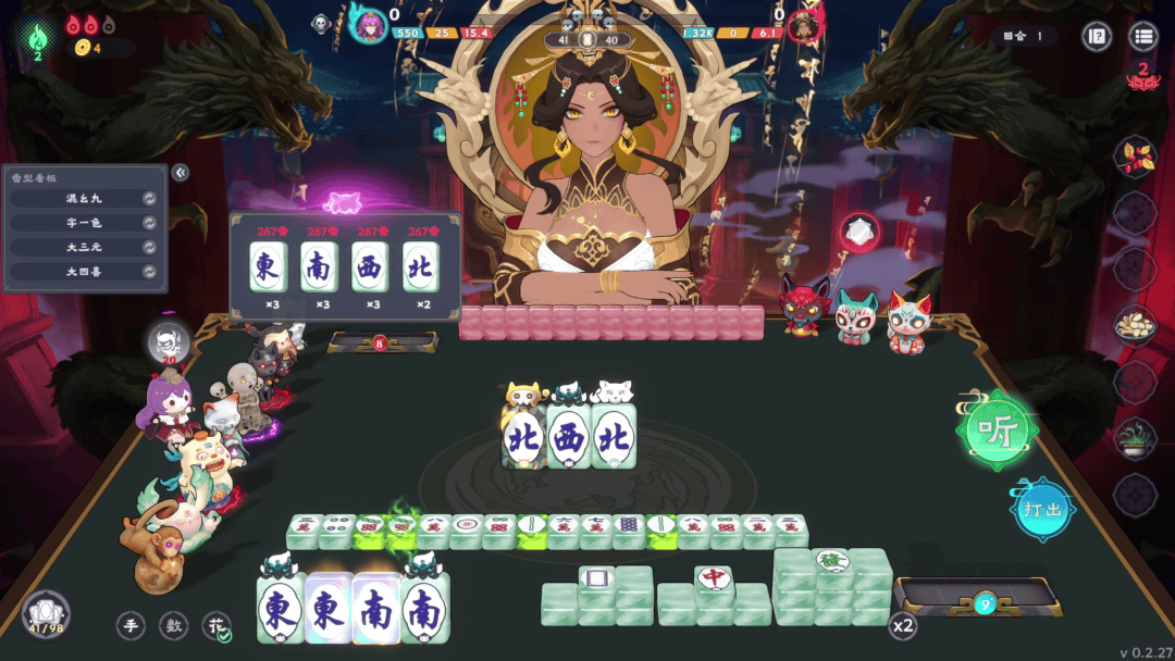 而制作人觉得,那种分数结算时血条撞来撞去、此消彼长最后险胜的感觉,才是他想要的玩法。为了权衡节奏和对抗,他们最终决定,让玩家打1V1麻将。