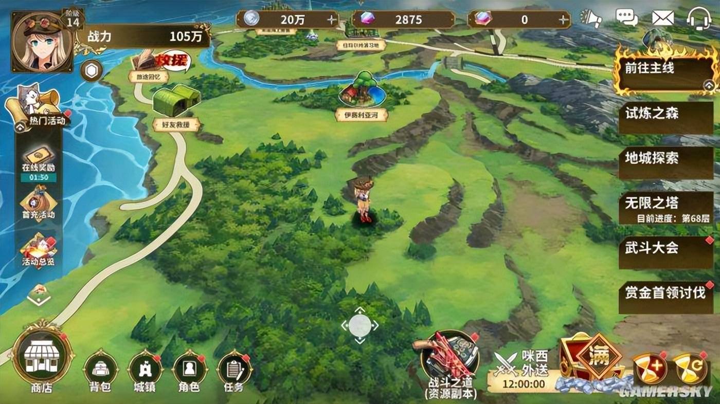 而随着进度提升,玩家便会解锁各种五花八门的玩法。比如包含轻度肉鸽元素的试炼森林、带有传统JRPG醍醐味的“地城探索”玩法、带有爬塔模式的“无限之塔”等等,这些玩法不仅能产出养成材料,在前期充当主线之外的调剂品,给玩家提供一定的新鲜感,更多的作用还是丰富游戏的后期内容,在一定程度上减缓长线运营游戏进入长草期时的枯燥感。