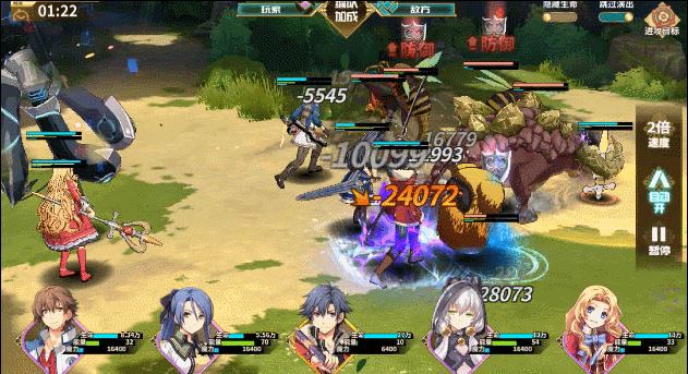 事实上,不单是角色阵容和导力器的搭配,在战斗中,玩家有时也要进行实时的策略决策。如果遇到棘手的敌人,玩家也需要善用角色的技能特性和定位,以及属性克制机制,在战斗中实时调整进攻目标,自行决定战技的最佳发动时机,优先解决高威胁的敌人。如果处理得当,越级挑战并不是什么难事。