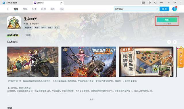 方法一:打开游戏中心或直接在搜索框搜索生存33天,点击预约,游戏上线后游戏将自动下载;