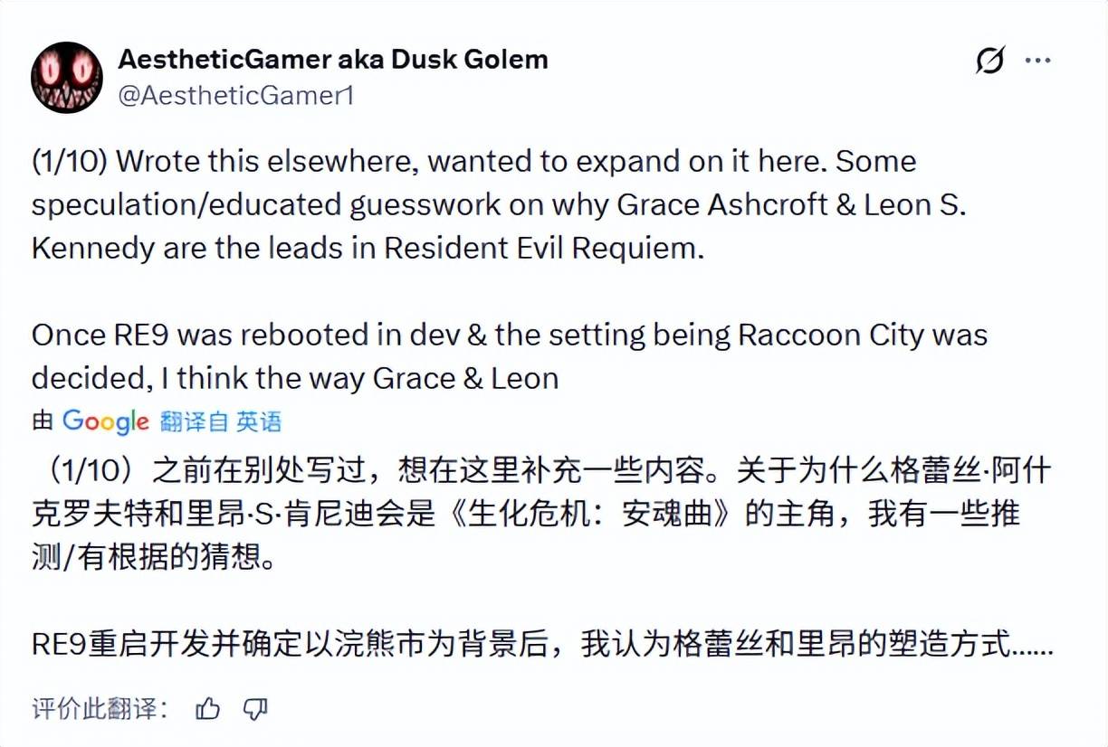 除此之外,Dusk Golem还说出里昂回归的原因,他认为:“如果故事回到浣熊市,让一位亲身经历过浣熊市事件的角色回归是十分合理。他能够带给老玩家一种‘重返故地’的叙事体验,这是许多恐怖作品常用的技巧,但《生化危机》系列此前从未真正这样做过”