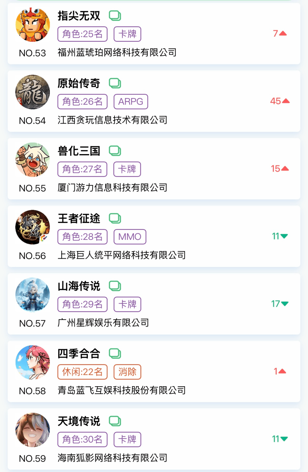 贪玩旗下的《原始传奇》排名飙升45名,冲到畅销榜第54名。