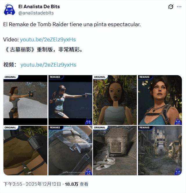 最近,知名技术分析账号 El Analista De Bits发布了《古墓丽影:亚特兰蒂斯遗迹》重制版与原版的画面对比图和实机视频,迅速在玩家圈炸开了锅。