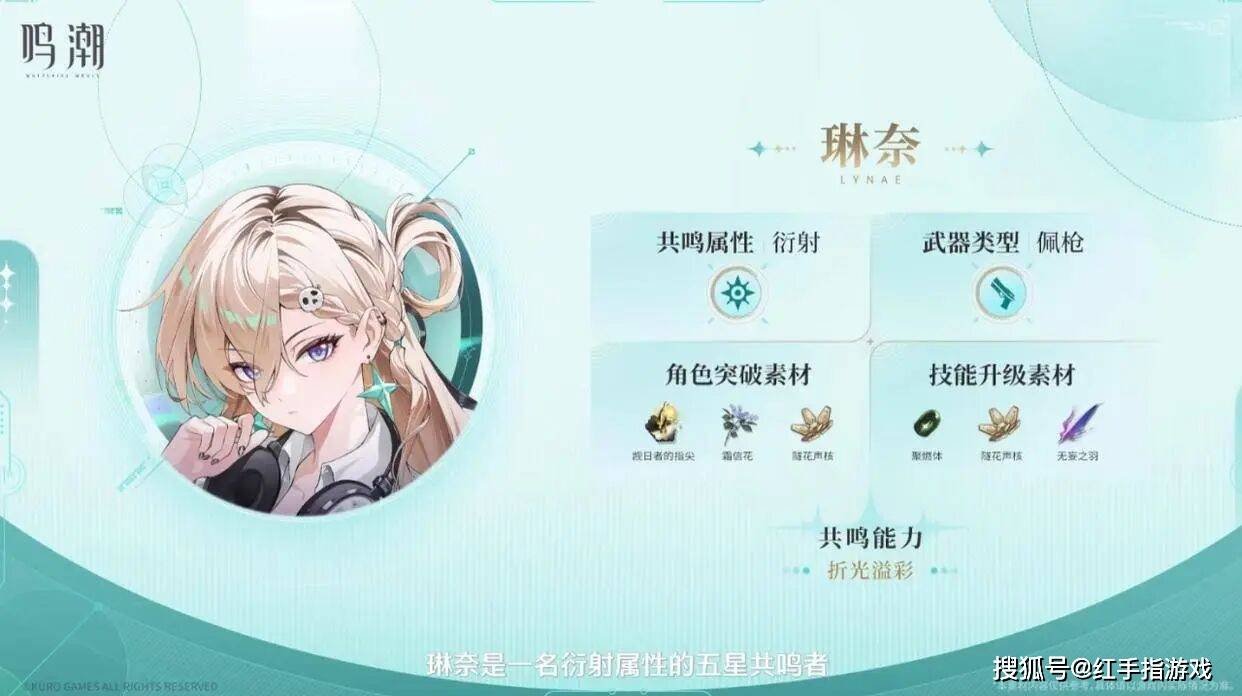 琳奈(上半卡池):定位首位专精衍射主C,高频触发衍射反应;输出稳定,属于补强光系队伍;适合没赞妮、只有菲比的小伙伴,琳奈直接扛起大旗!