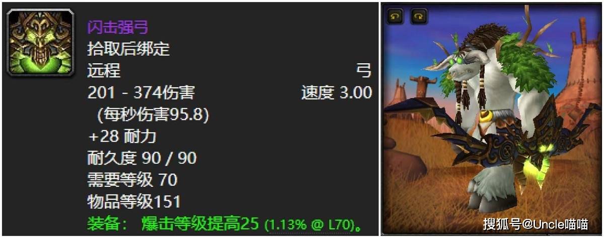 今日弓的席位,喵叔在闪击强弓和金弓之间徘徊了下,但是考虑到怀旧服小花伞的出现让金弓黯然失色,喵叔果断是把中期最热门的闪击强弓给抬了出来,起码阶段性他的需求度是100%的,那么这里问一问各位资深大兄弟,闪击强弓与黑弓比较,输出方面能强多少呢?
