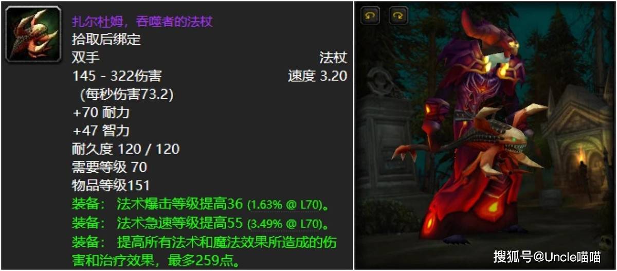 不难想象,TBC周年服已经在来的路上了,喵叔敢说起码70%的大兄弟都在等待哪一款的来临吧!毕竟燃烧的远征版本无论成熟度,还是游戏可玩性都堪称史诗级。回归正题,第一款喵叔给到的是狗杖,对于法系DPS来说,狗杖的竞争在阶段性是最恐怖如斯直戳天花板的,所以法杖这一席位喵叔给到是狗杖,至于金杖亦或者大洪流之辈,竞争度与需求度远远不及狗杖的,不知道各位服不服?