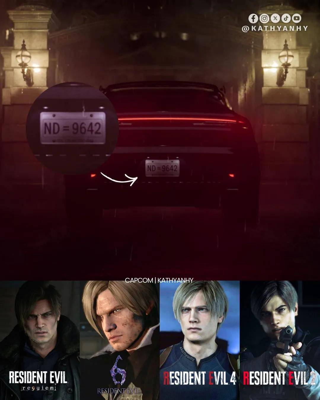 他开的保时捷车牌号ND=9642,则暗示里昂登场的游戏序号分别是2、4、6、9四部。