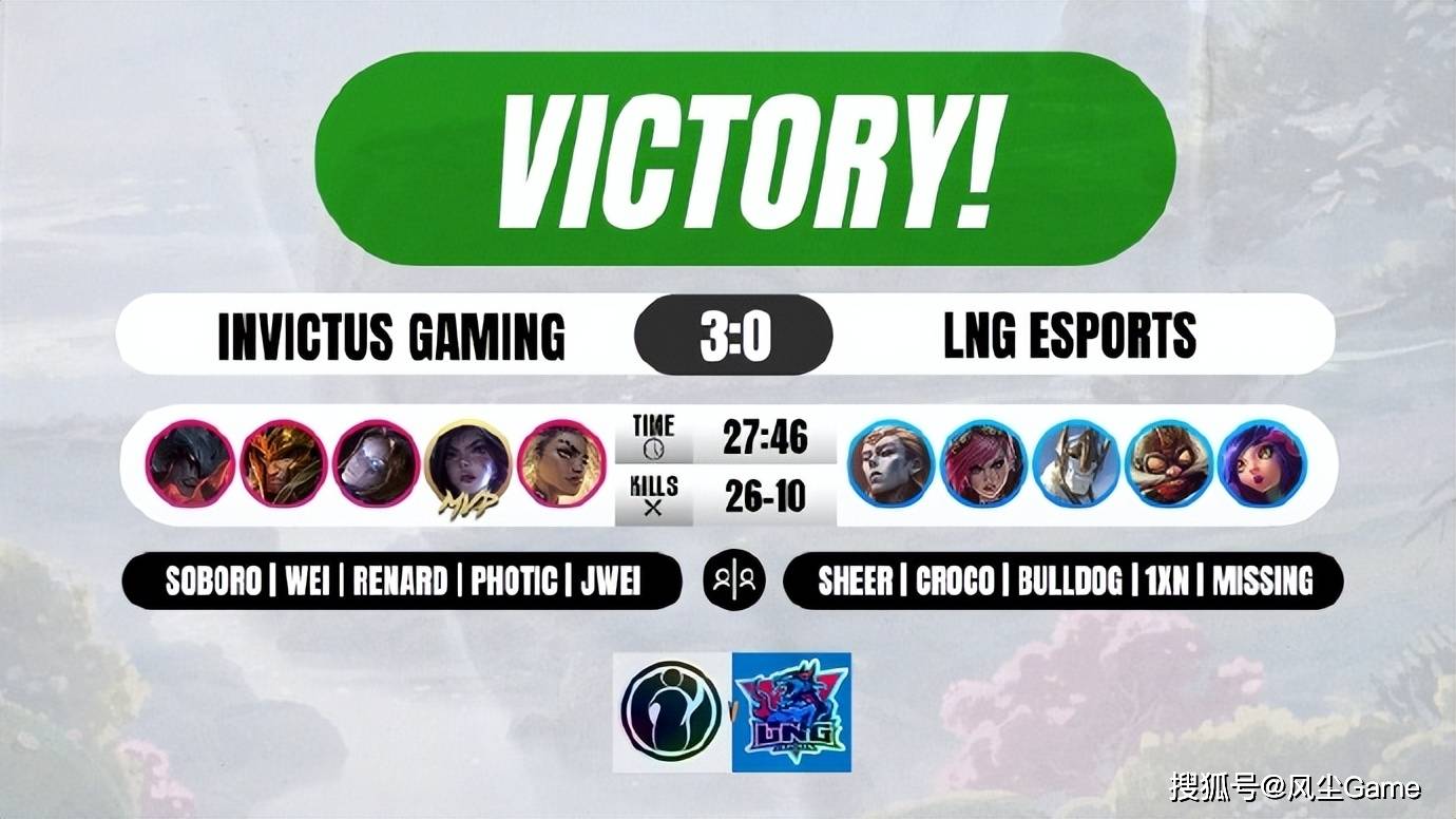 这场比赛IG展现出来的实力,确实是有点强的,第一把Wei前期节奏碾压,各种抓人、控资源,才17分钟LNG就被迫接停牌龙团,Jwei给机会被秒的情况下,IG四打五,愣是把团战打赢了,后续的龙魂团,上路打出一波单杀,LNG减员不敢接团,IG拿到龙魂,稳健运营轻松赢下第一局。